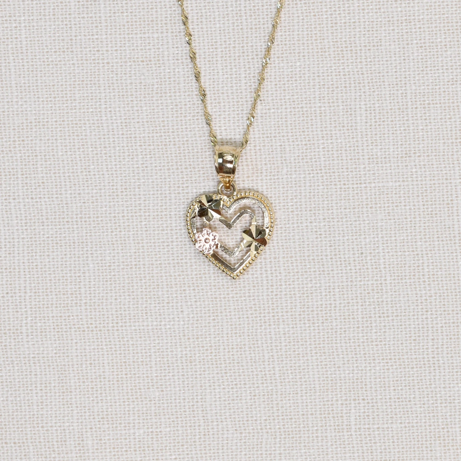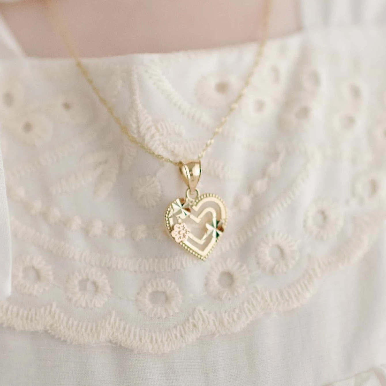 As part of our fine jewelry collection, this 14k Solid Gold Heart with rose gold rose could be given as a special reminder of the love you share for her and is sure to be cherished. Includes a 16″ 14k solid gold chain. The perfect addition to her Christening outfit. Also makes for the perfect shower gift!