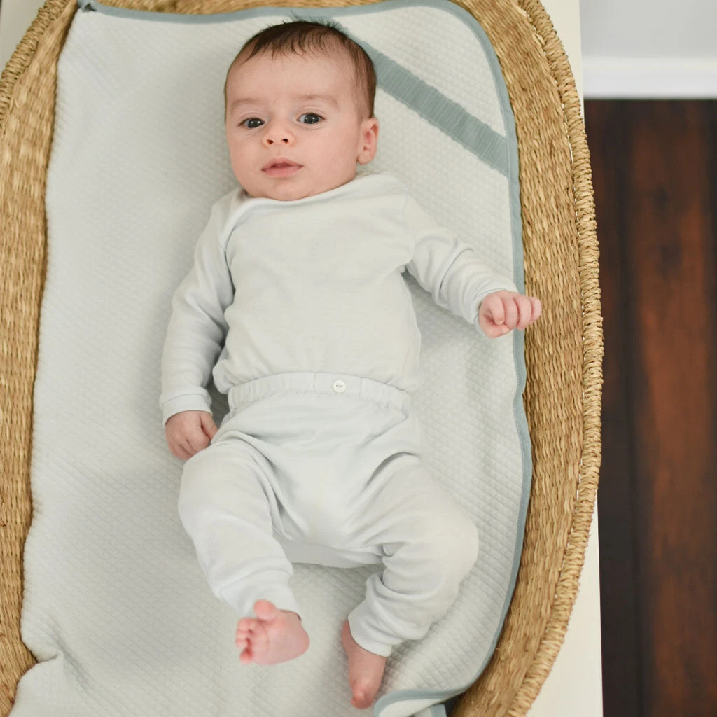 Comfy and cozy, this super soft Pima cotton top and leggings set in soft teal is perfect as an outfit on its own, or mix the top and leggings with any of our new quilted cotton pieces to create additional outfits, perfect for all seasons! Also makes a wonderful and stylish take me home outfit!