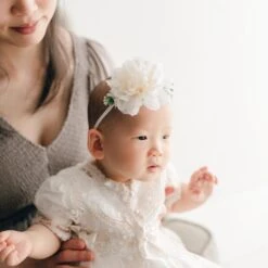The perfect accompaniment to her Communion dress, these Lace Cross Socks are made with a cotton blend for a comfortable fit with embroidered cross and lace edging. The cross detail is so sweet, these can be worn weekly to dress up her church attire!