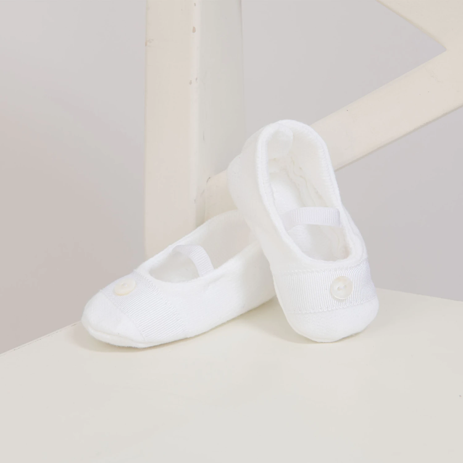 A beautiful pair of Boys Booties to compliment his suit! The Elliott French Terry Booties are handcrafted with the same French terry used to make the pants of our Elliott suit! Made in our classic design for Boys Booties. Features grosgrain ribbon detailing across the toe with a summary. Soft elastic across the foot helps make these booties a comfortable fit to wear throughout his Christening Day.