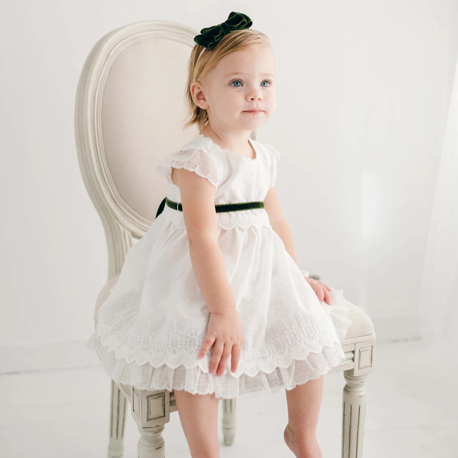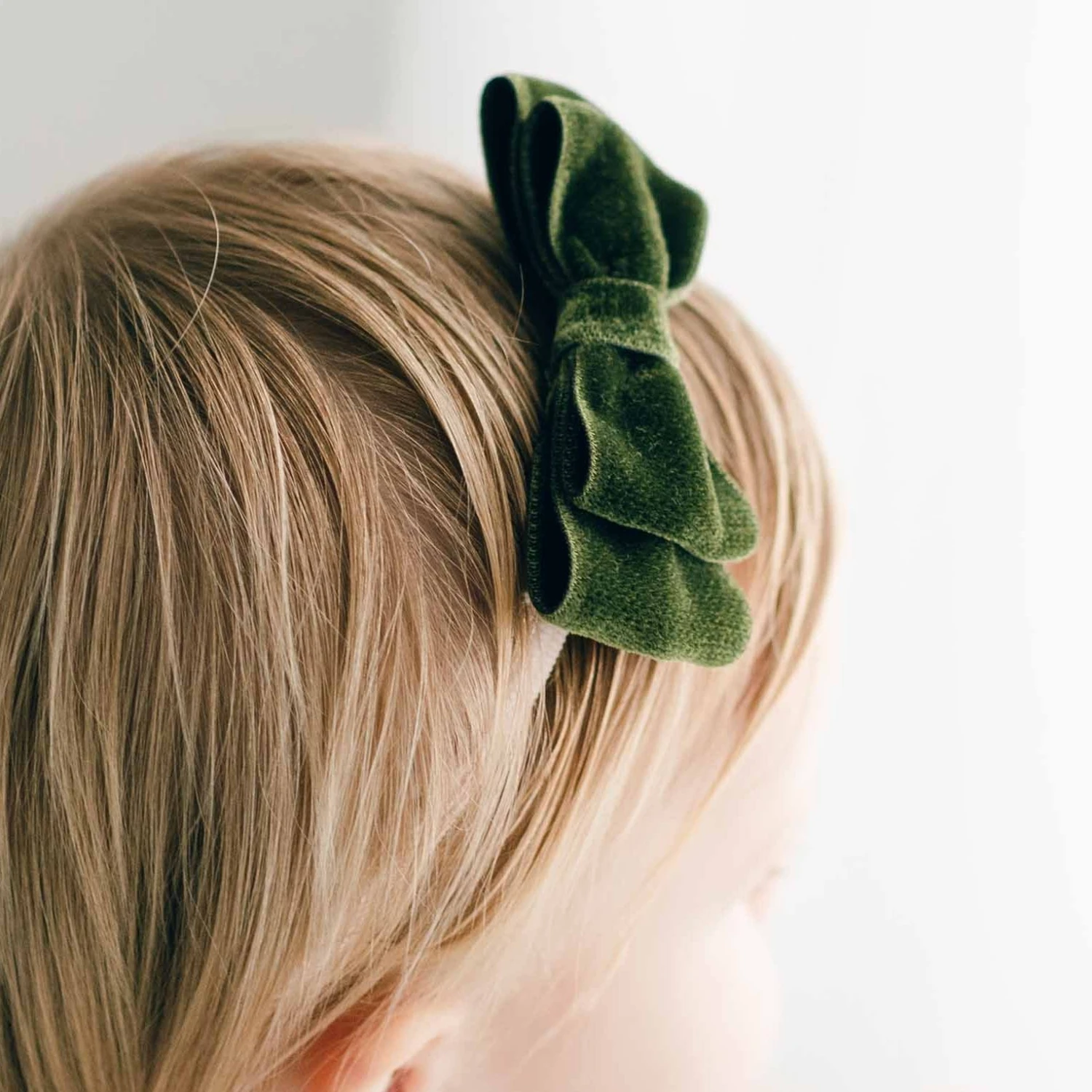 Holly and Jolly, made with a super soft mistletoe green velvet ribbon, our tiered double loop velvet bow headband is the perfect finishing touch to her Emily Green Dress! A hand-stretched nylon band allows for a comfortable fit that will grow with your little one.