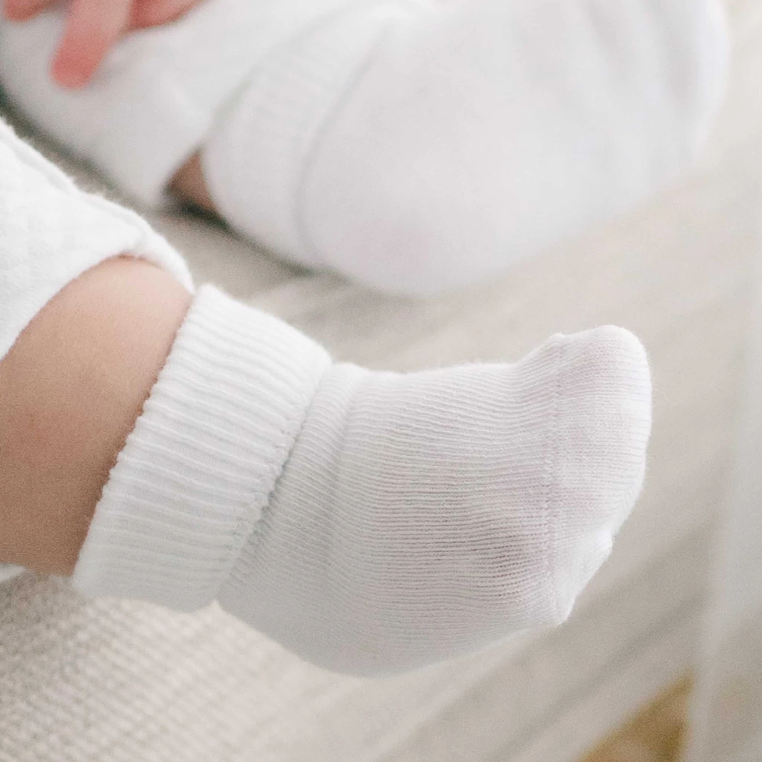 This soft simple sock for baby girls is the perfect addition to her outfit. Available in white, ivory or black to compliment any collection. Perfect to pair with our custom Mary Janes.