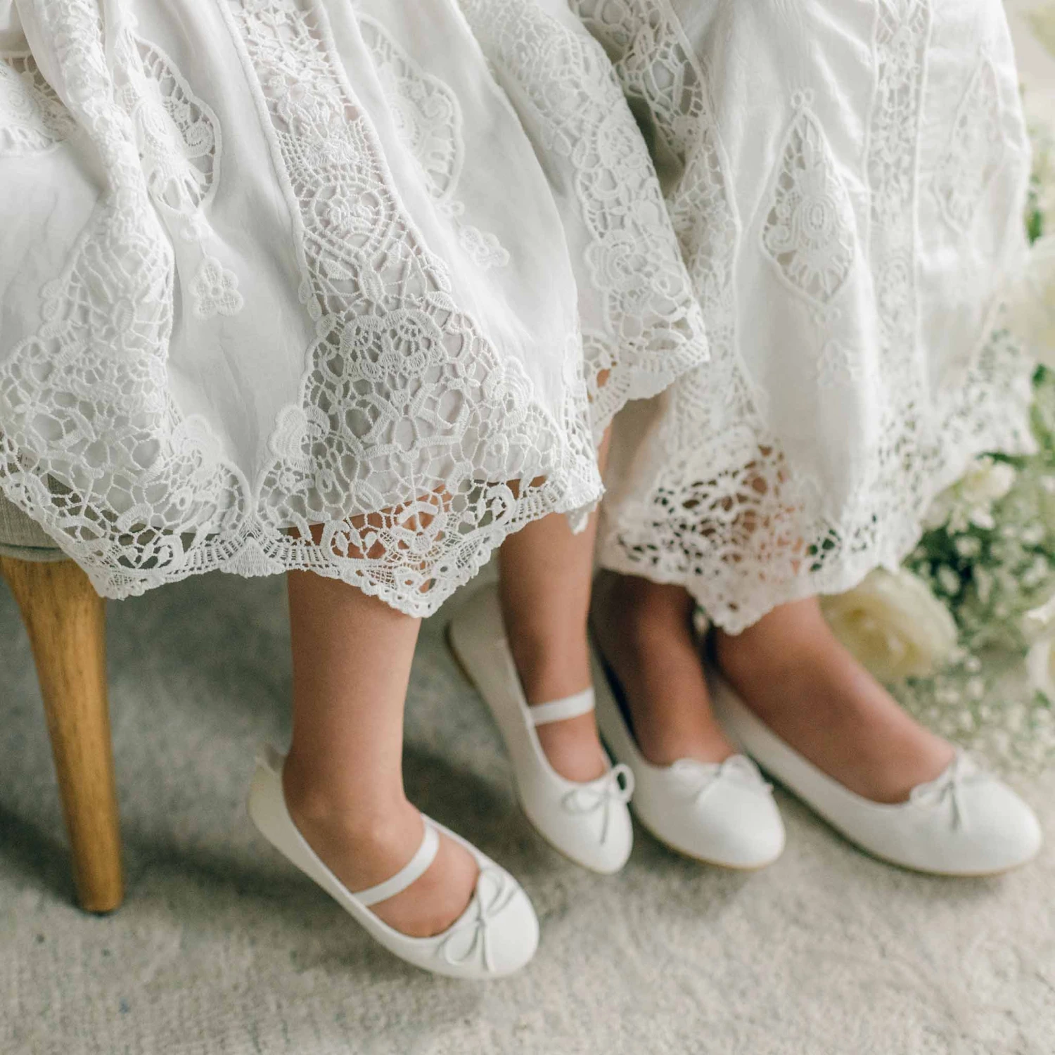 An elegant tea-length dress, the Grace Lace dress is hand-crafted down to the last detail. Made from a silk and cotton blend in ivory featuring a Venice inset for a detailed beauty not found on most girls dresses. A lace bodice with cap sleeves add to the uniqueness of the dress. Ties in back with a sash for a perfect fit. Finish off her look with the Grace Lace headband or bow clip and you’re set! Ideal for her communion, family photos, or as a flower girl dress.