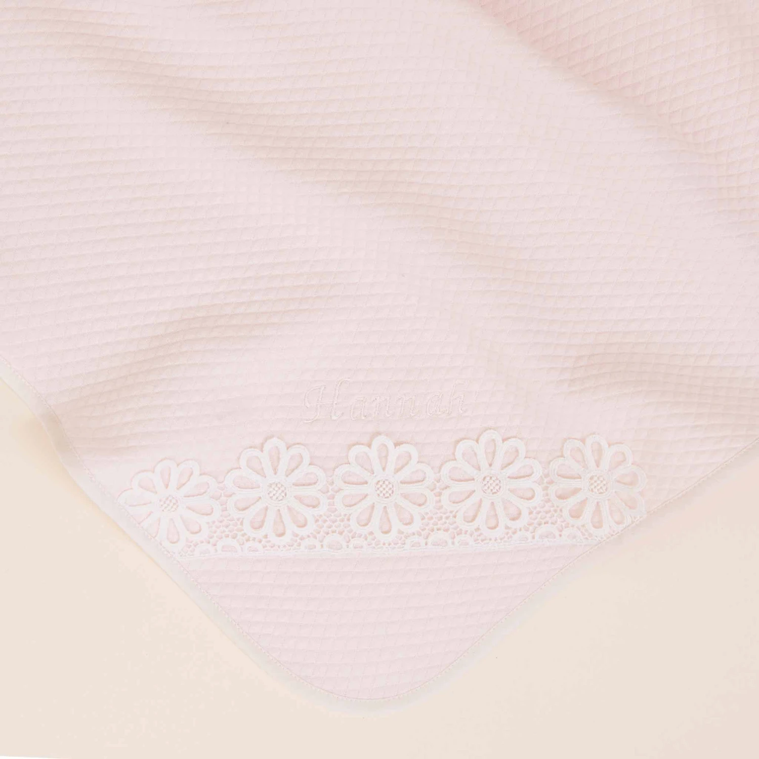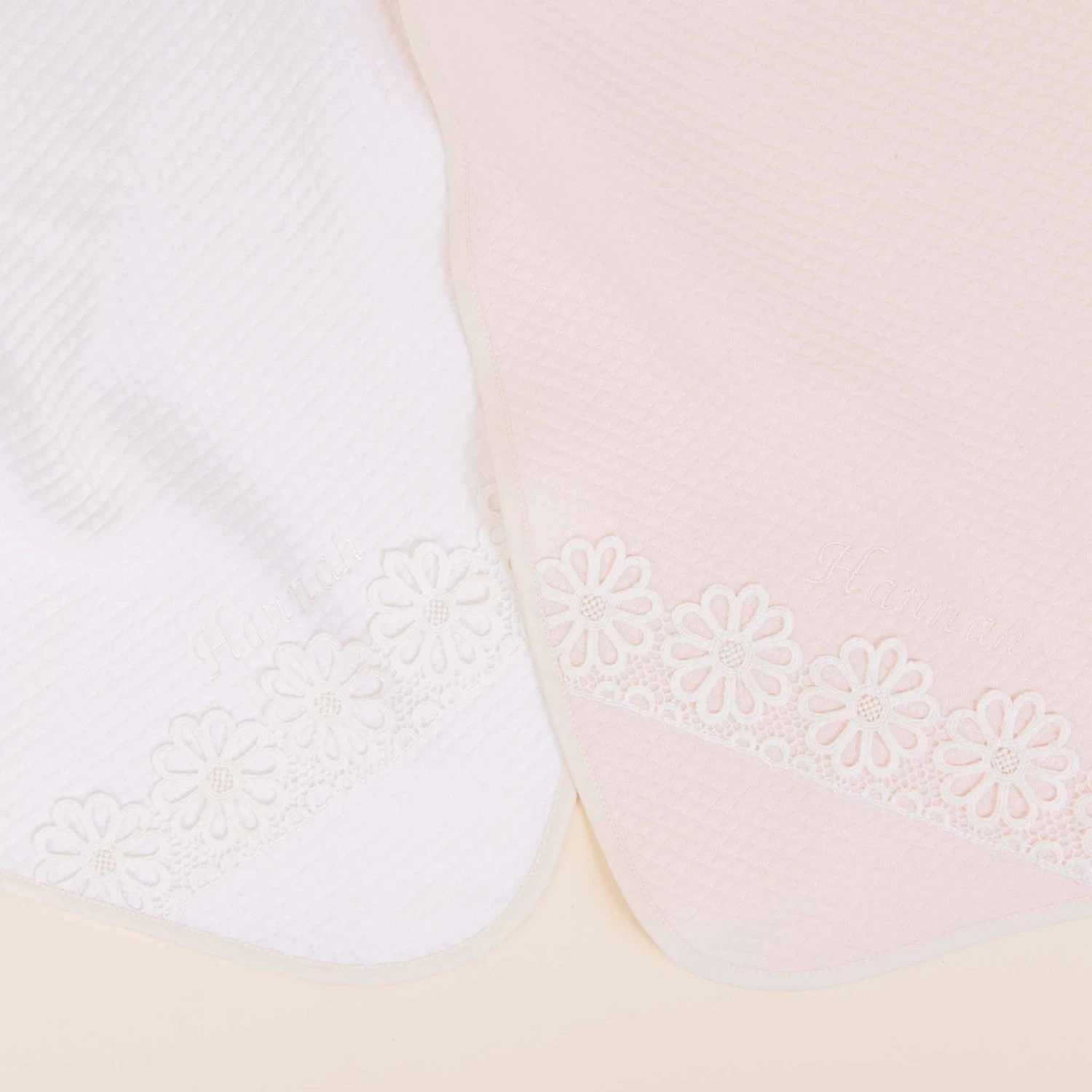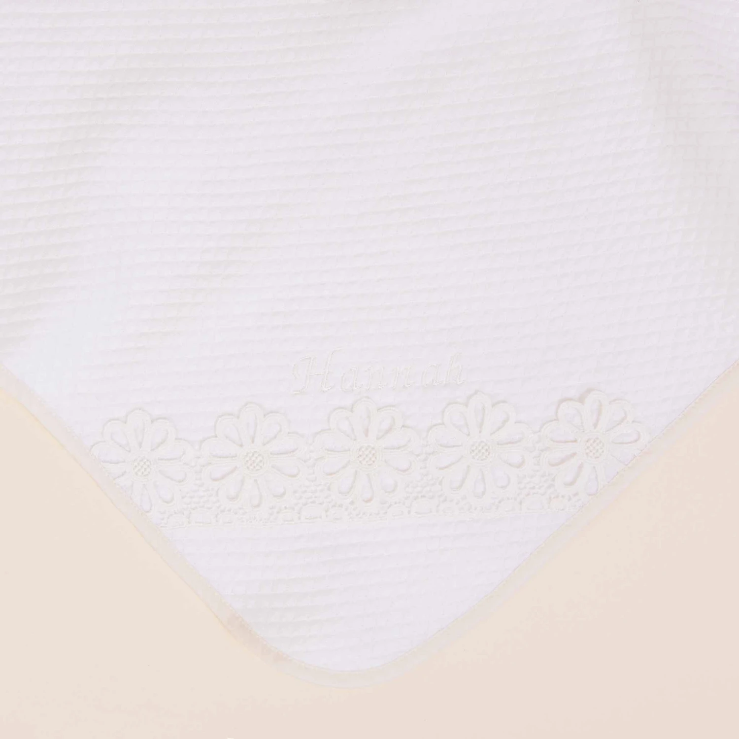 A soft and simple blanket to compliment her Hannah newborn set! The Hannah blanket is made from our softest quilted cotton, a plush 100% cotton in soft white with a lovely quilted texture that makes it perfect for snuggling up to. The same premium cotton in ecru we use on the Hannah knot gown is used for the binding. Optional embroidery to add her name for a personalized touch that will make this blanket a true heirloom piece.