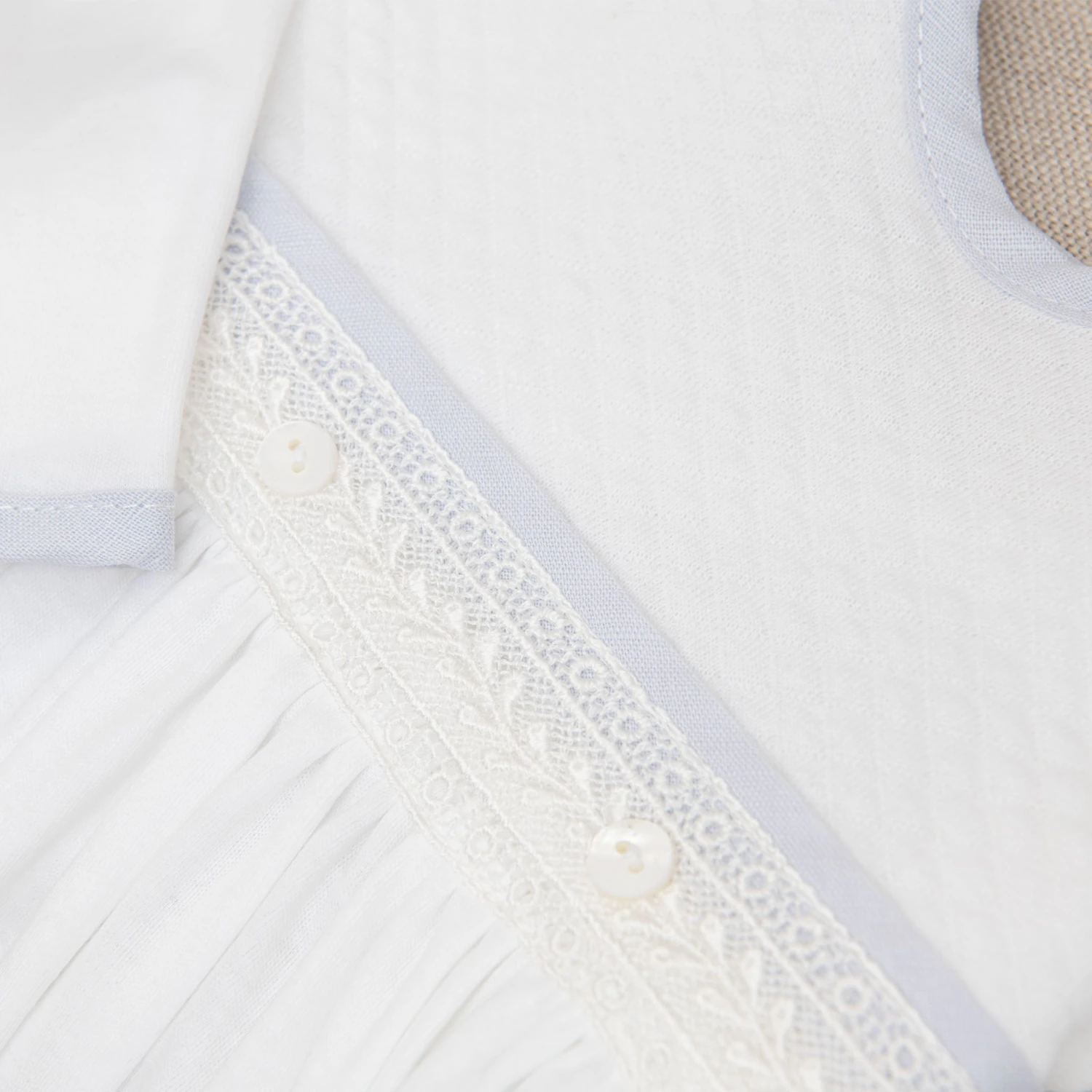 - Light blue linen trim
