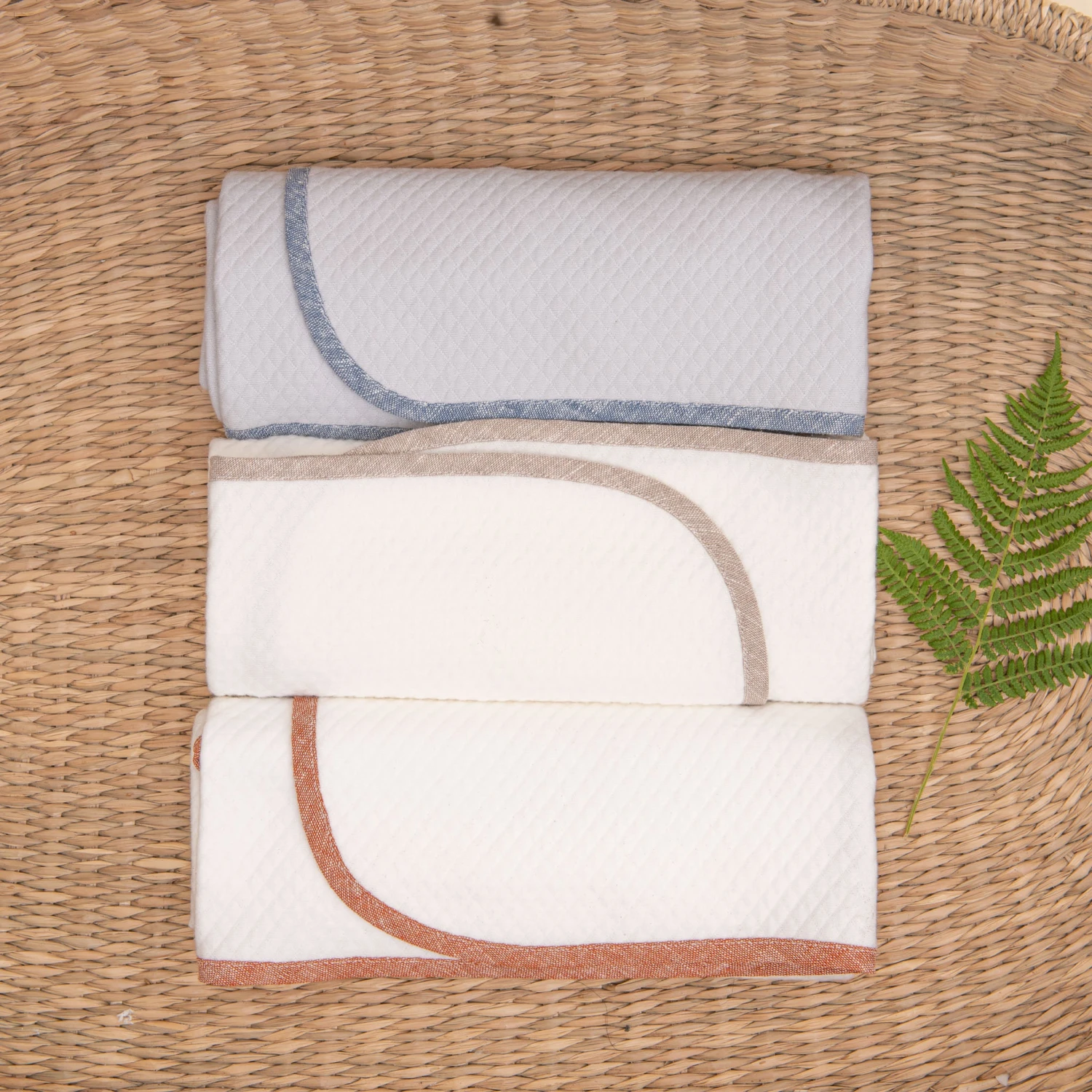 The Henry trim blanket is made from our softest textured 100% cotton, with a lovely texture that makes it perfect for snuggling up to. The same fine linen blend we use to make the Henry collection pieces is used for the trim. Optional embroidery to add his name for a personalized touch that will make this blanket a true heirloom piece.