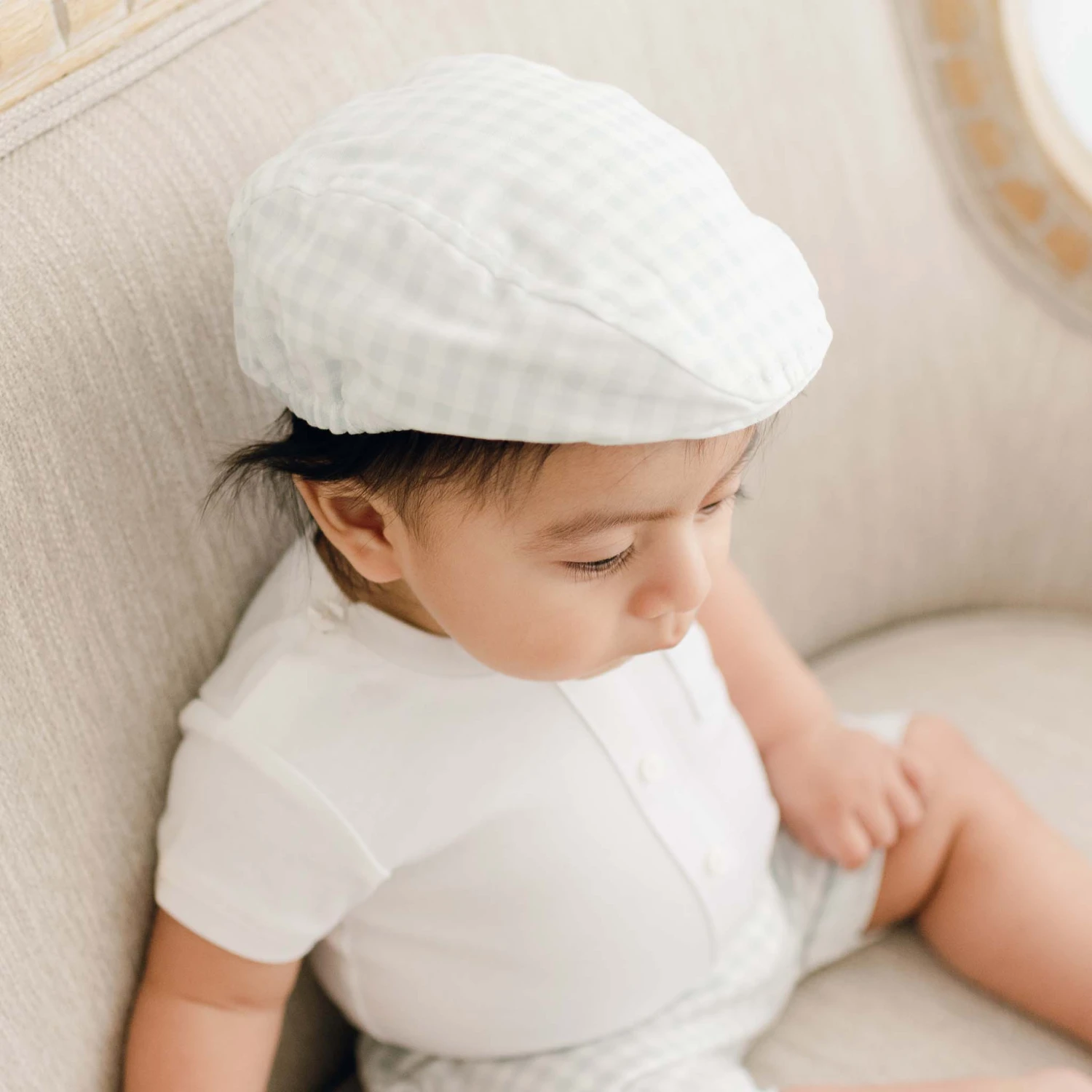 Using the same cotton gauze material used to make the Ian shorts, this newsboy style hat is the perfect match to wear for any occasion. Fully lined and featuring a soft elastic band around the back half to ensure a snug and comfortable fit that he will be able to wear all day.