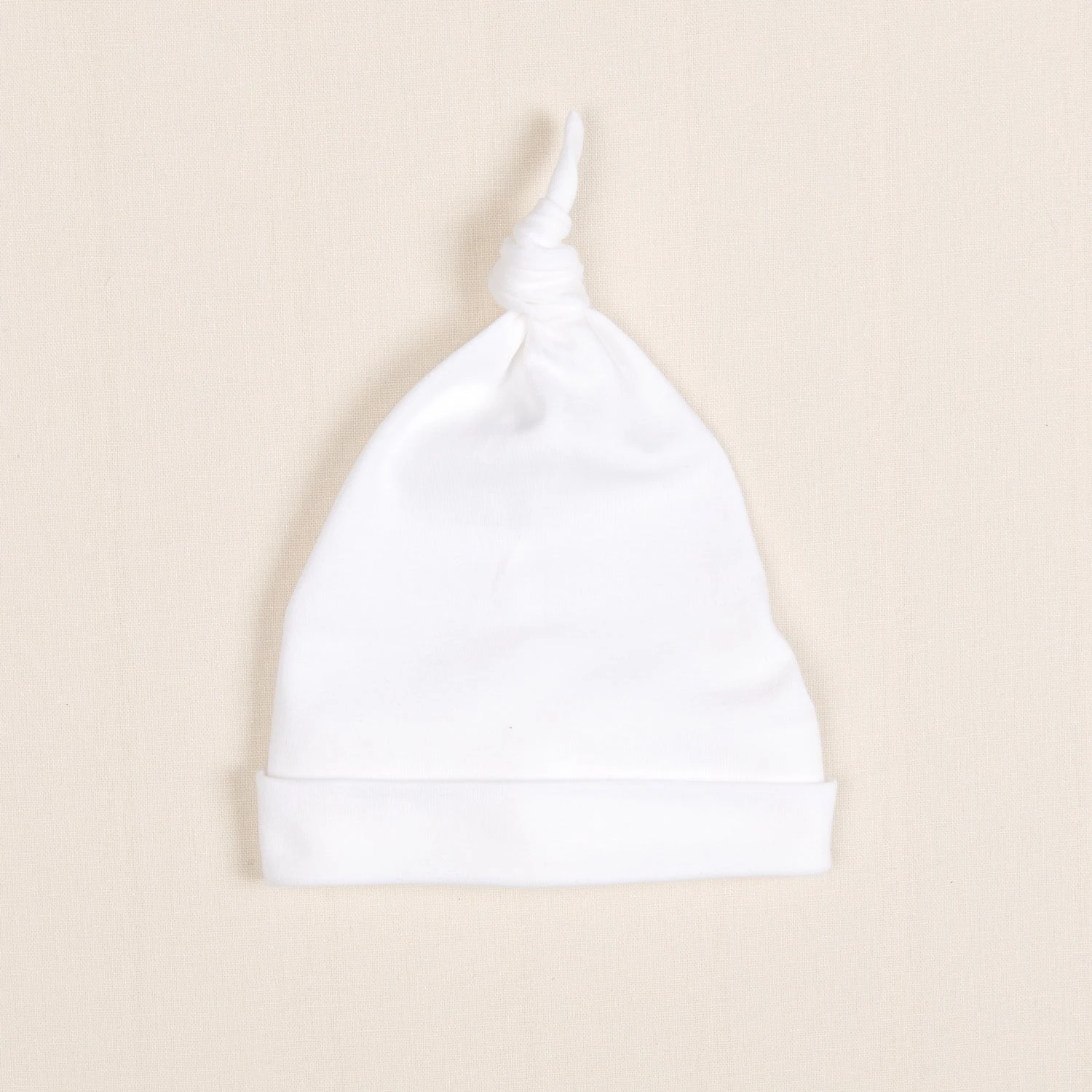 Our knotted baby hat is a sweet addition to your baby’s newborn gown. Made with premium soft pima cotton in a lovely soft ivory, the knot design is traditional but also on trend. The hat has just the right hint of stretch to fit any size head, and the knot is adjustable to fit how you want! You can be sure your baby is cozy and comfortable in their coming home outfit, baptism outfit, or for newborn pictures when they are wearing this darling cap.