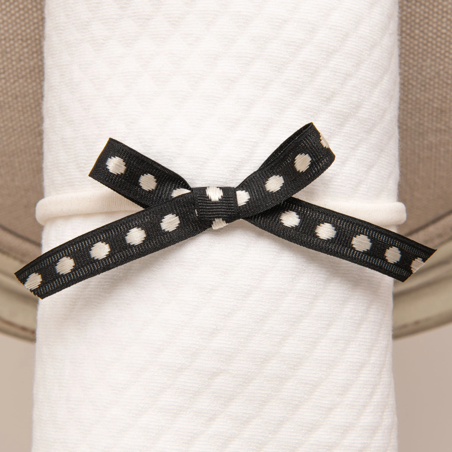 The most dainty accessory to complete her June look! Our newest style headbands are made with super soft and stretchy nylon, so it will be perfect and comfortable for baby to wear all day! A cute bow made with black and white embroidered ribbon, is perfect for matching her June jumper dress or adding just a fun detail to a more simple outfit!