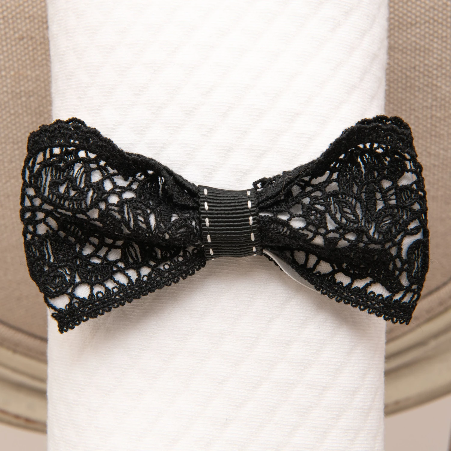 An adorable addition to her June jumper dress or perfect for everyday! The June lace bow headband is made with a super soft hand-stretched nylon band to give her the most comfortable and easy fit and finished with a sweet bow made with the coordinating black floral lace and ribbon, with a white satin ribbon lining. A look that is sure to please!