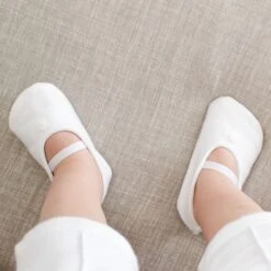 The perfect match to his Liam outfit! Made from a super soft quilted cotton with a champagne silk trim. Accented with cotton ribbon and summarys on the toe. A soft elastic strap helps to keep them in place. These booties for baby boys are the perfect way to complete his look from head to toe.