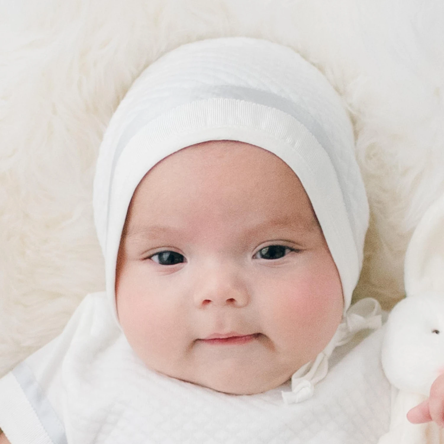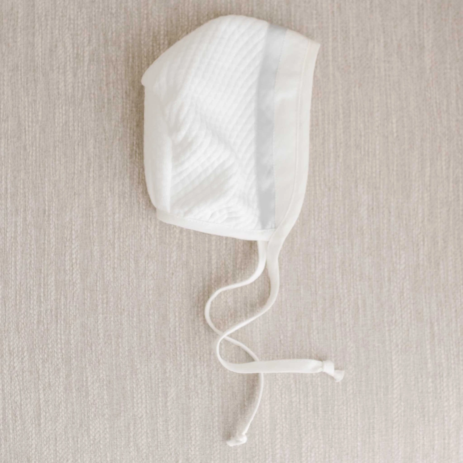 This timeless boys baby bonnet has the perfect blend of comfort and style. Crafted from our luxuriously quilted cotton in ivory, it’s trimmed with light ivory linen to perfectly coordinate with his Owen newborn gown – but it’s simple enough to add the finishing touch to any outfit. Ivory linen ties under the chin provide a snug fit to keep your newborn snuggly and warm. Celebrate the arrival of your little one with an adorably classic baby bonnet!