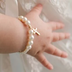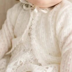 This lace headband looks gorgeous with her Penelope Christening gown, but is simple and elegant enough to pair with any girls special occasion outfit. Ivory elastic lace all the way around allows for a comfortable fit at any age. Accented with pretty silk ivory ribbon bow. Add this to her beautiful baby clothes for a timeless look.