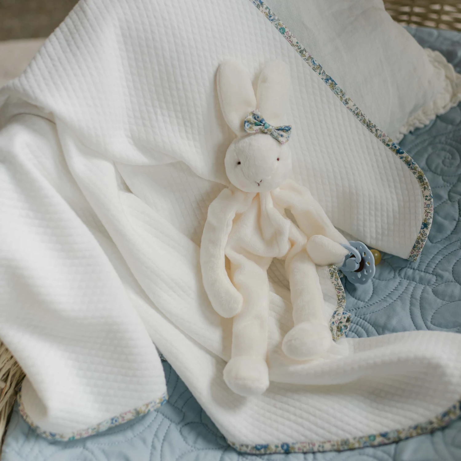 Made with our classic quilted textured cotton in a lovely soft shade of light ivory, trimmed in one of our sweet Petite Fleur cottons to add just the right touch of detail. Add baby’s name to the corner of the blanket to create a cherished keepsake. A perfect gift that little one can cherish for years to come!