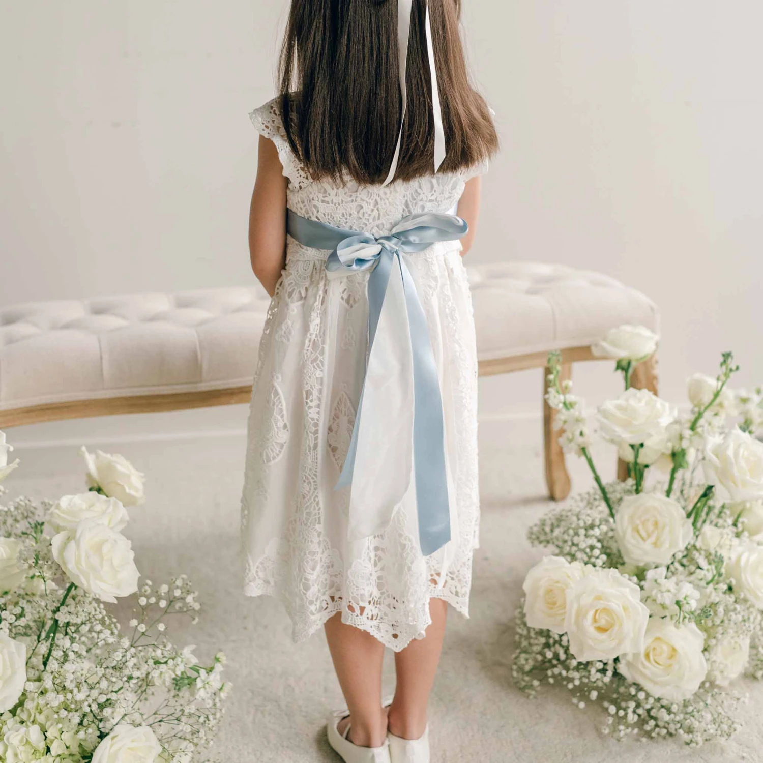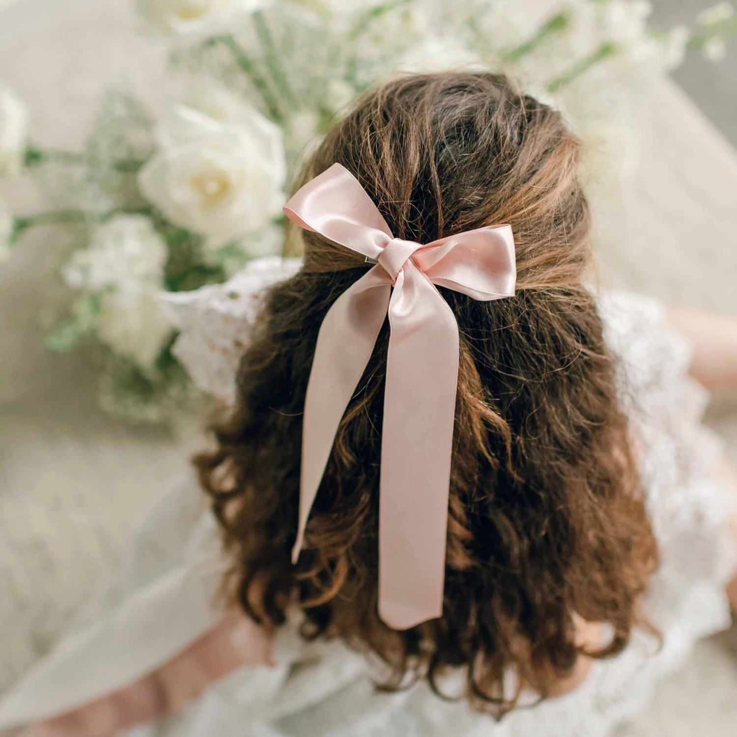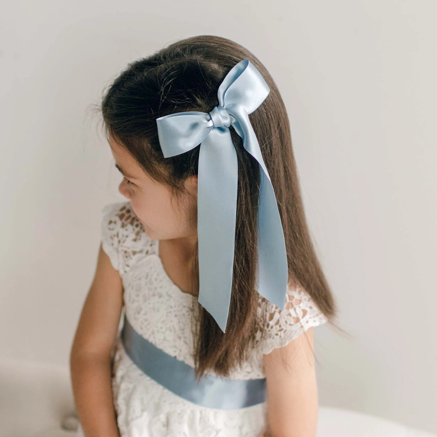 A wonderful addition to our Lola or Grace dresses for older girls! A rich toned 1 1/2″ wide silk satin ribbon sash in your choice of color and a matching long tail hair bow will add a perfect finishing touch to tie her outfit together. Hair bow uses an alligator style clip to attach to her hair for a secure and polished finish.