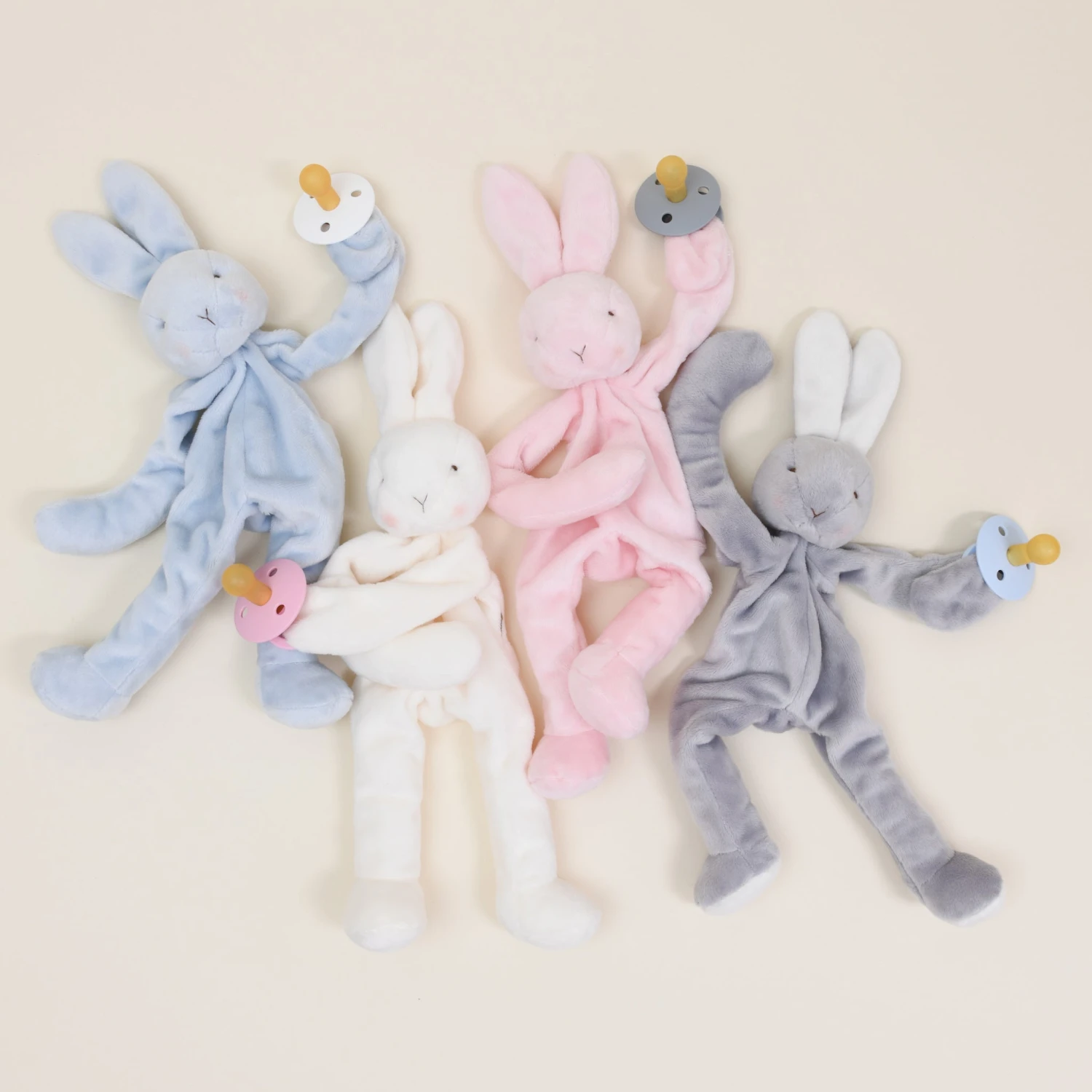 Floppy, sloppy, silly and soft, our playful pacifier holding silly buddies are sure to delight, tie onto baby’s stroller, crib and car seat. Makes a great Christening gift or shower present.