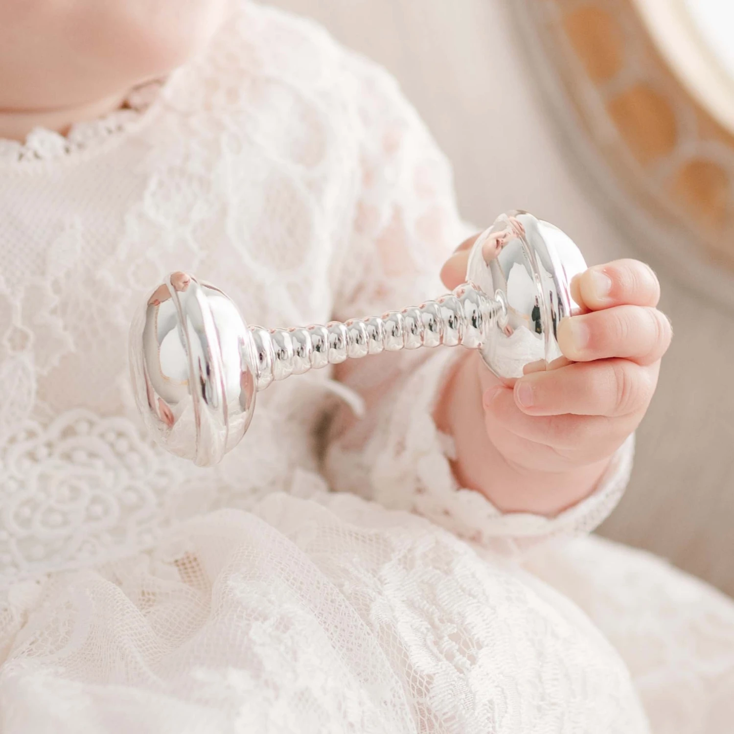 There are a lot of baby gifts available, but none is more iconic then the silver rattle. We have used this ourselves in many photo shoots with great results! We have selected this charming spiral handle rattle style for a classic and iconic look. Pick one up today for their special event.