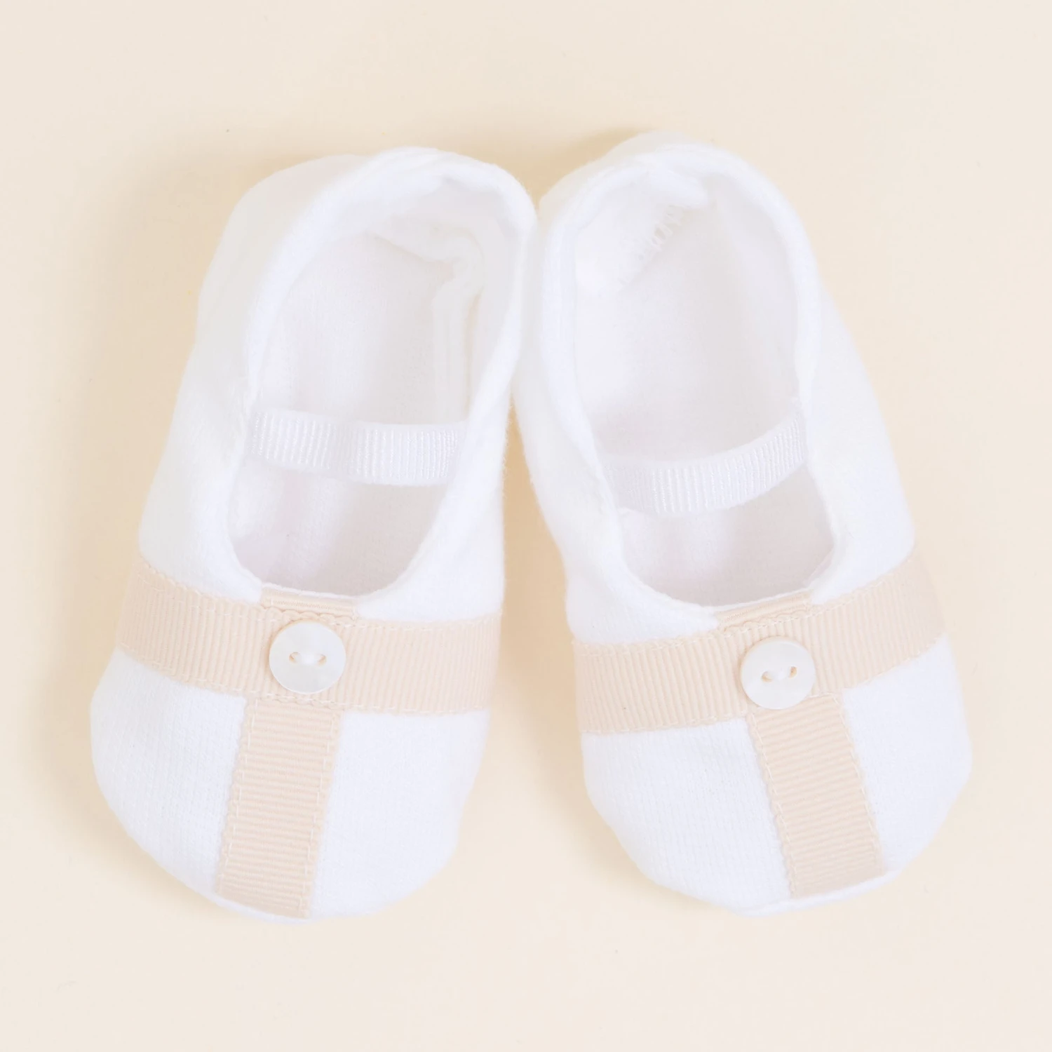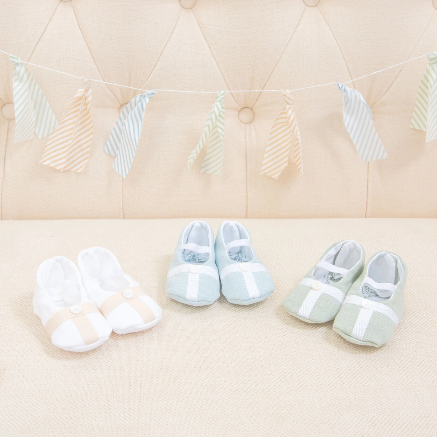 The Theodore booties are the perfect match to his Theodore suit! These French terry cotton baby booties feature grosgrain ribbon trim and a summary detail across the toe and a soft elastic strap to ensure a secure and comfortable fit, made in the matching color to his Theodore suit. The simple yet elegant design makes them an adorable addition to his take outfit.