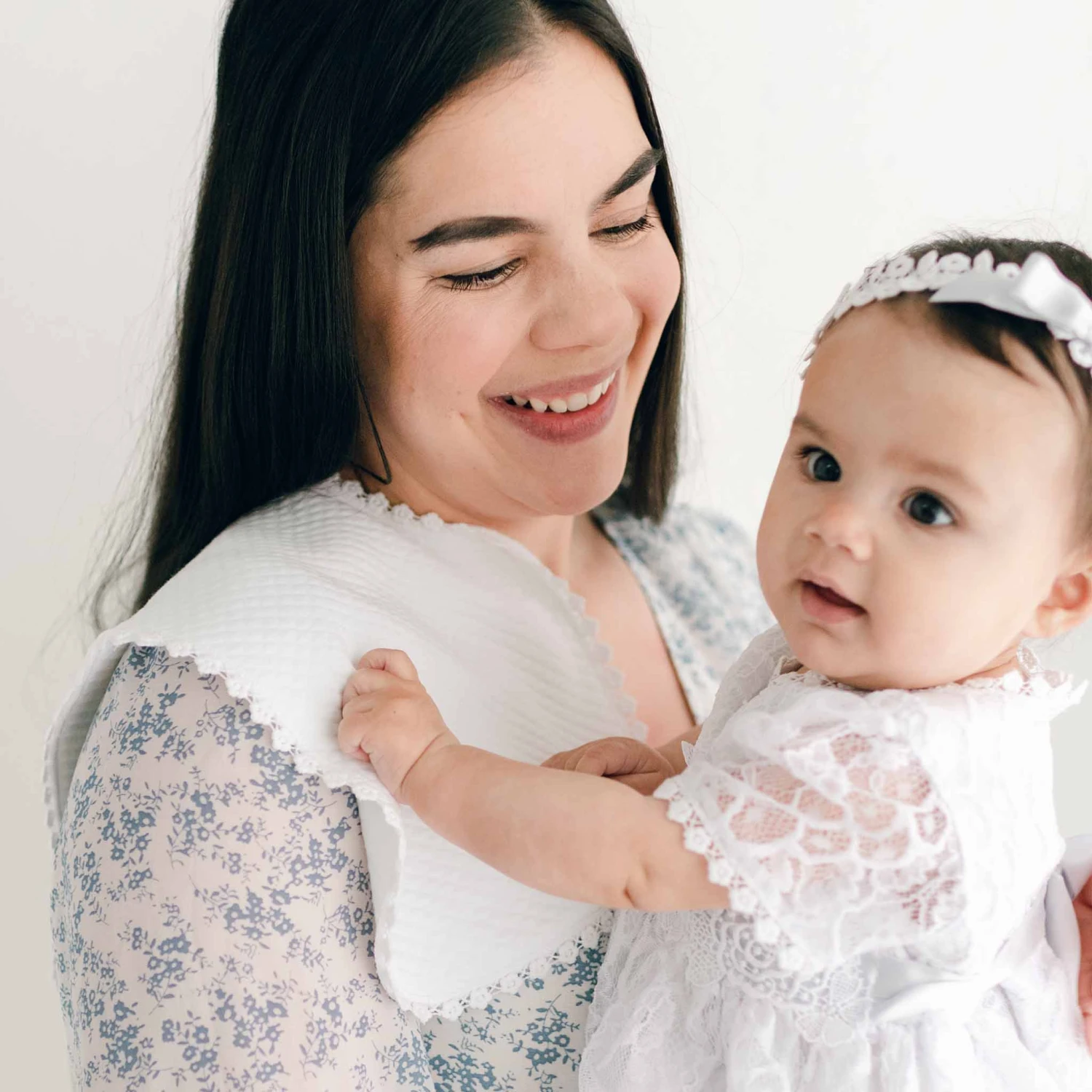 This burp cloth features two layers of incredibly soft, quilted cotton in white, making it the perfect accessory to keep you and your little one comfortable. With a gentle cut-out design, it easily fits over either shoulder for ultimate convenience.